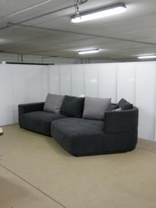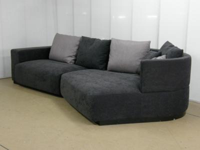 Conponibile cm 290 x 145 SX in tessuto con basamento in legno laccato nero.