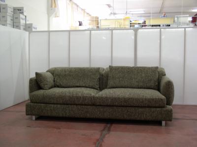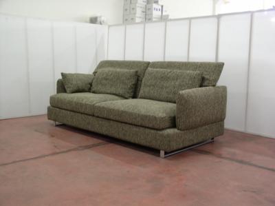 Divano cm 218 x 105 completamente in tessuto con piedi verniciati col. argento e schienali orientabili.